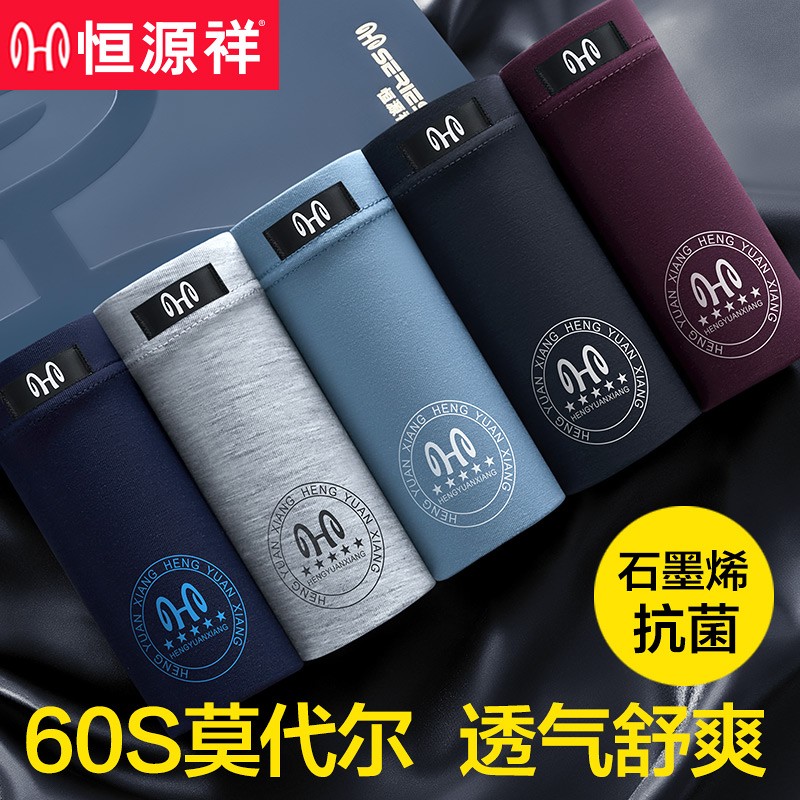 【产品名称:恒源祥男士内裤男莫代尔无痕平角石墨烯抗菌纯棉四角短裤夏季薄款】