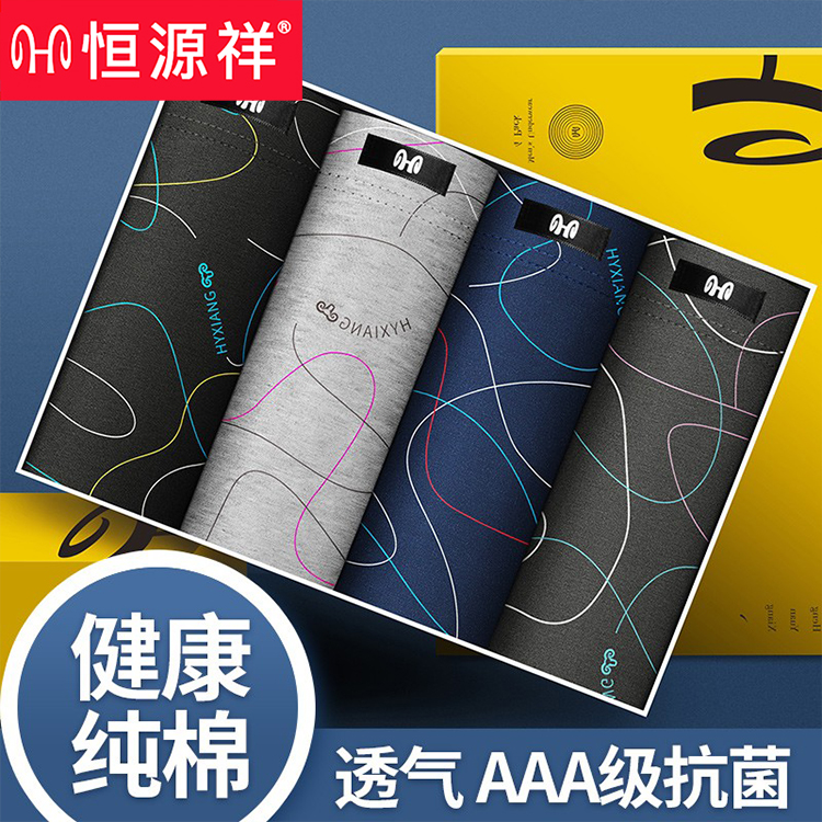 【产品名称:恒源祥纯棉男士内裤男生四角裤头青年抗菌裆全棉平角短裤夏季薄款】