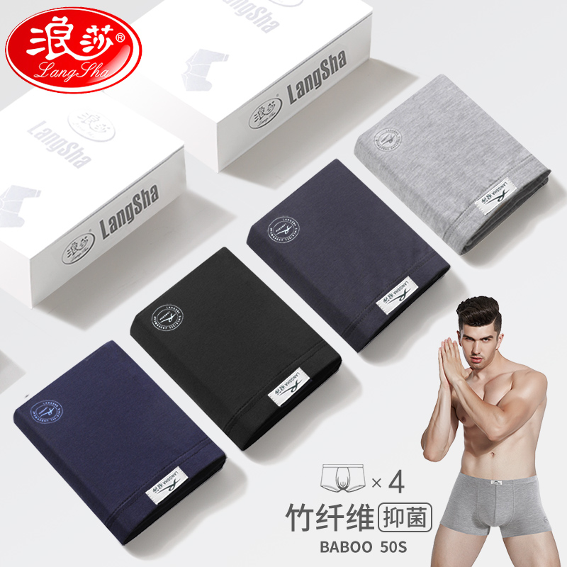 【产品名称:浪莎男士内裤男冰丝四角短裤头抗菌透气2022新款夏季男生平角裤衩】