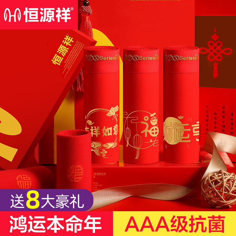 【产品名称:恒源祥本命年男士内裤平角裤莫代尔大红色四角短裤结婚礼物属兔年】
