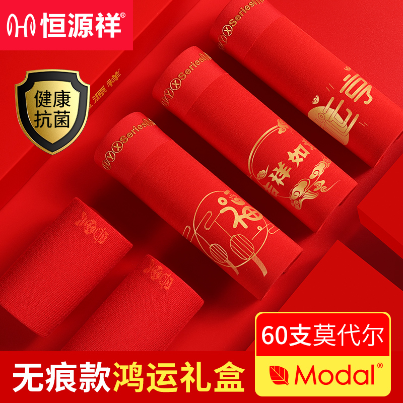 【产品名称:恒源祥男士内裤平角本命年冰丝莫代尔大红色四角短裤夏礼物属兔年】