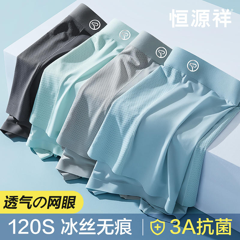 【产品名称:恒源祥男士内裤冰丝凉感款四角短裤男生夏季薄款运动无痕平角裤衩】