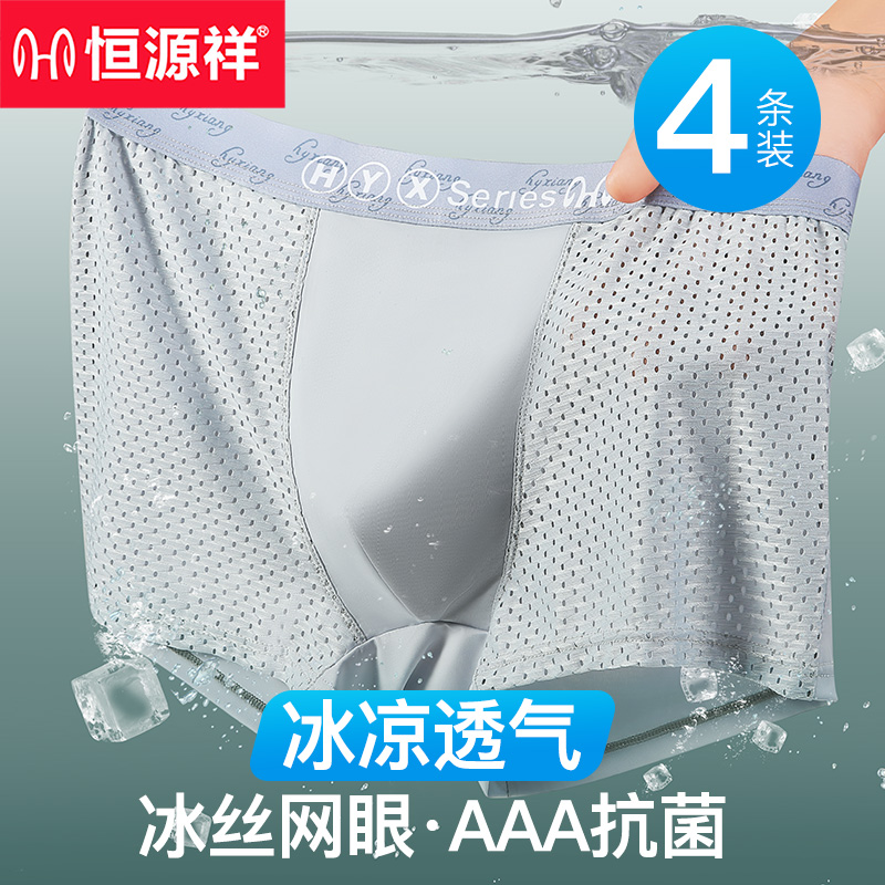 【产品名称:恒源祥冰丝男士内裤男孩夏季大码四角短裤头运动男生薄款平角裤衩】