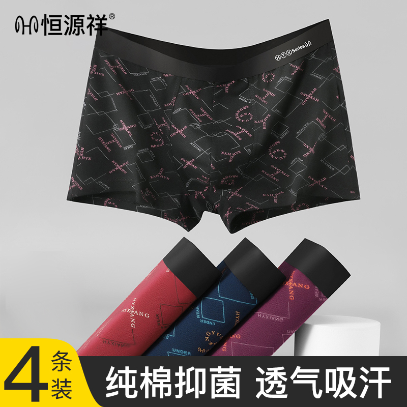 【产品名称:恒源祥男士内裤纯棉2023年新款吸湿透气抑菌底档大码青少年平角裤】