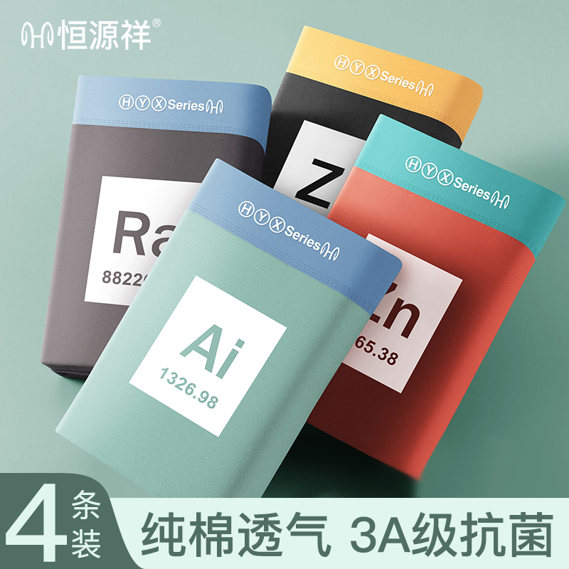 【产品名称:恒源祥抑菌男士内裤青少年纯棉宽松大码时尚印花撞色透气纯色内裤】