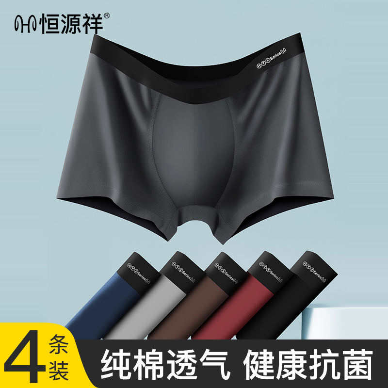 【产品名称:恒源祥纯棉抑菌内裤男士2023年新款透气吸汗纯色大码青少年男裤头】