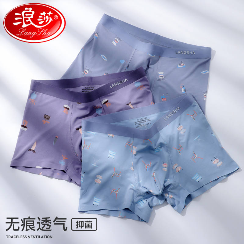 【产品名称:浪莎男士内裤莫代尔冰丝无痕夏季薄款透气2021新款裤衩四角短裤头】