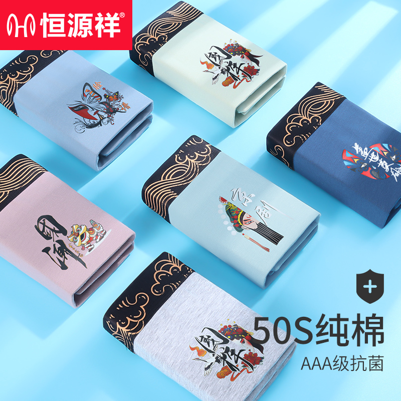 恒源祥官网男土纯棉抗菌青少年大童内裤平角四脚短裤中老年人大码