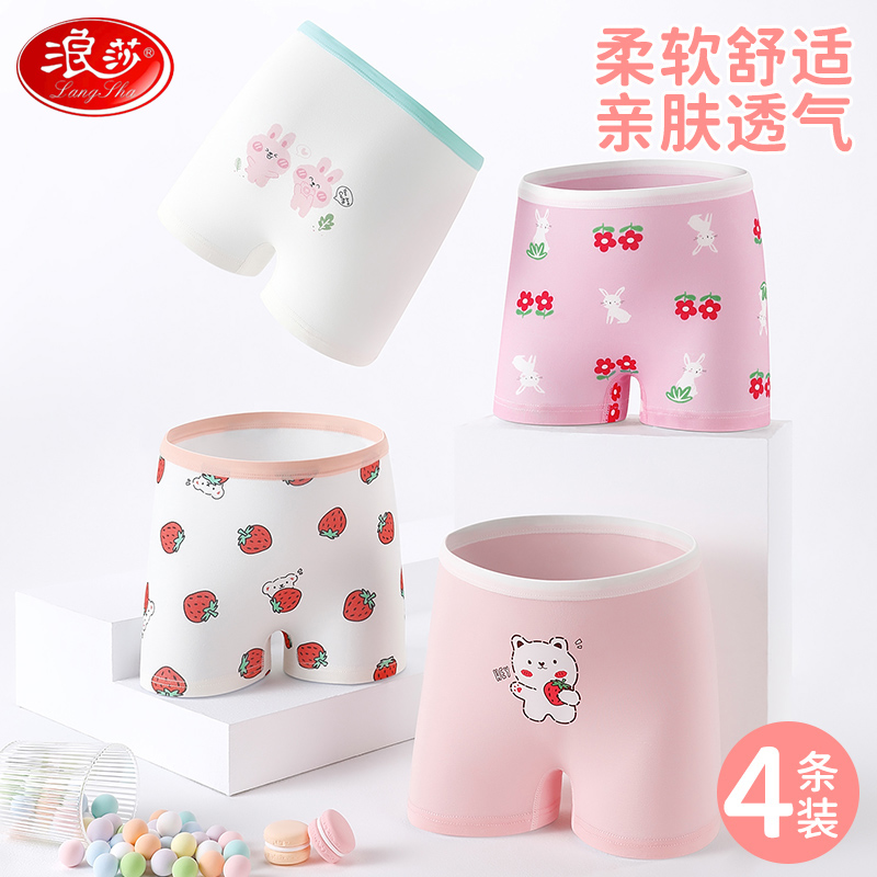 【产品名称:浪莎儿童纯棉内裤女童100%全棉四角底裤中大童透气平角短裤不加PP】