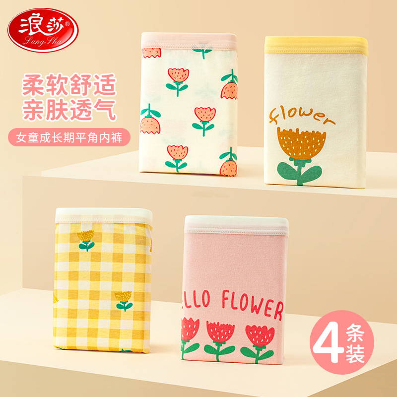 【产品名称:浪莎100%全棉儿童内裤女童纯棉平角短裤中大童四角内裤宝宝不夹PP】