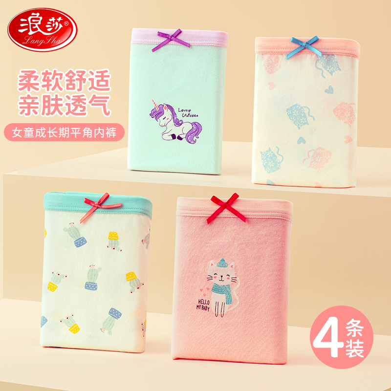 【产品名称:浪莎儿童内裤女童100%纯棉透气平角内裤中大童四角短裤不夹屁屁】