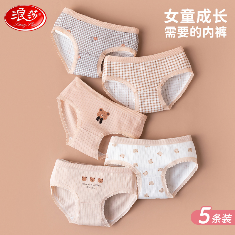 【产品名称:浪莎儿童内裤100%纯棉三角裤12周岁以上少女中大童100%全棉裆短裤】