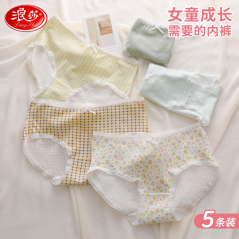 【产品名称:浪莎12周岁以上青春期少女纯棉三角短裤女大童学生透气高腰内裤】