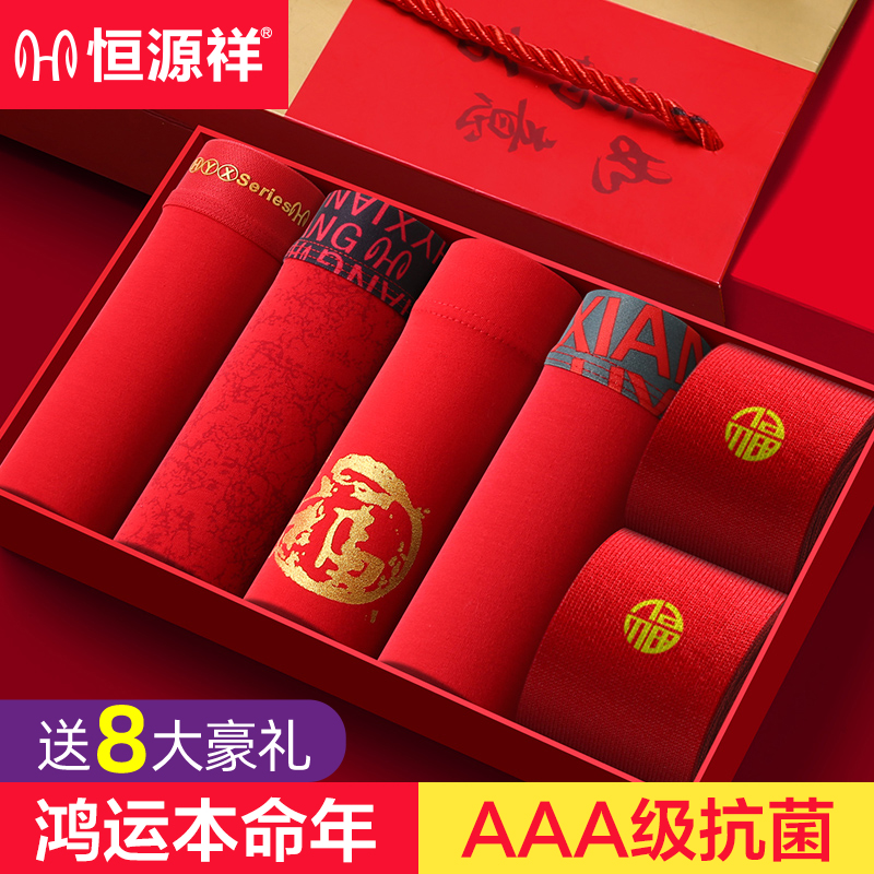 【产品名称:恒源祥本命年纯棉内裤男士平角大红色四角短裤结婚属兔年礼物大码】