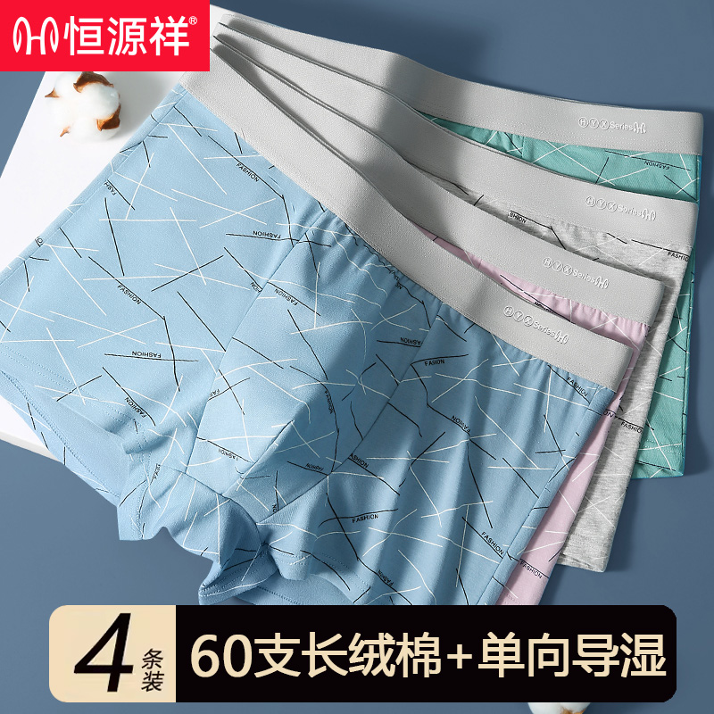 【产品名称:恒源祥男士内裤纯棉夏季薄款男款四角短裤头男生大码运动平角裤衩】