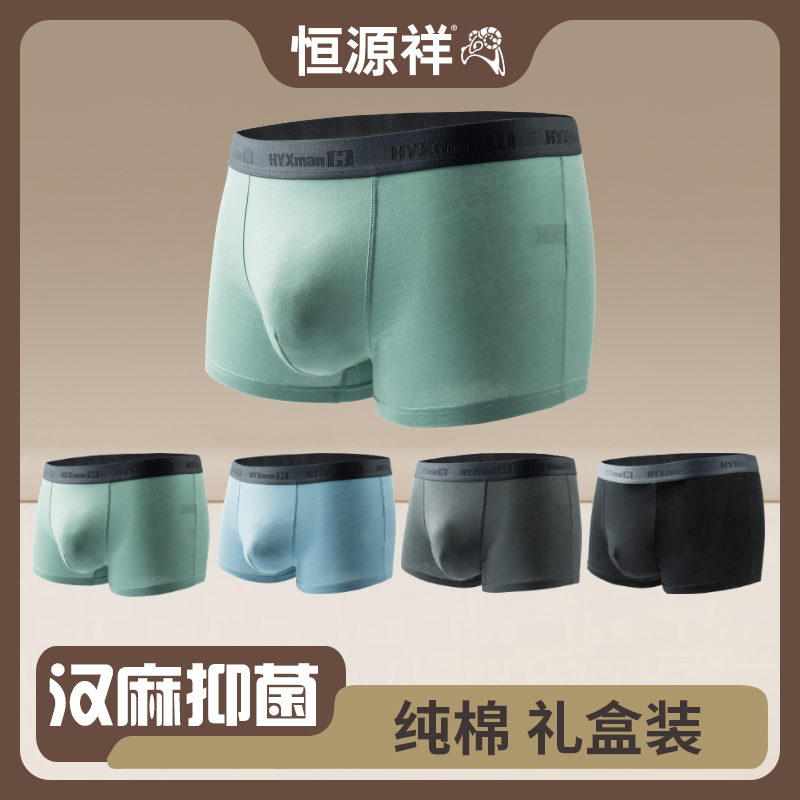 【产品名称:恒源祥男士内裤纯棉抗菌春夏薄款男生冰丝莫代尔秋季运动平角裤头】