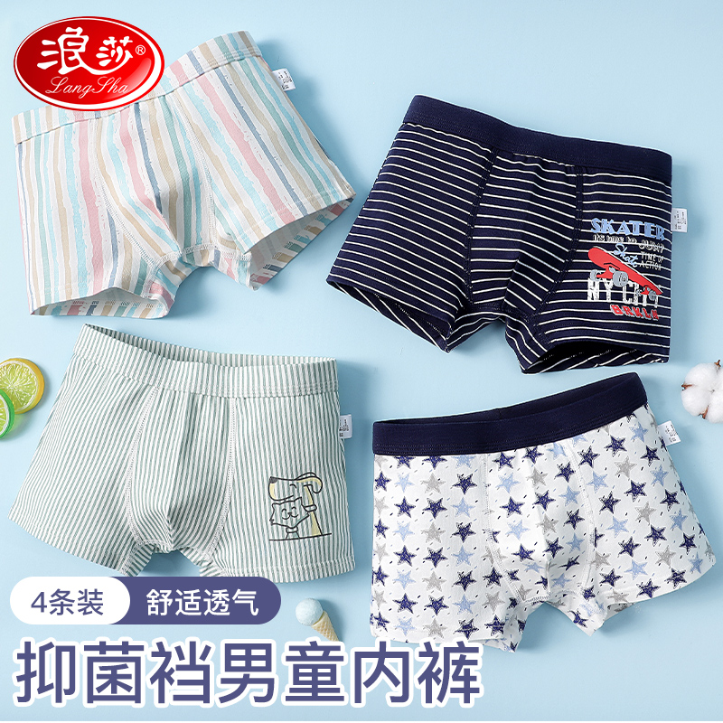 【产品名称:浪莎儿童内裤男童纯棉平角春秋款男孩全棉四角短裤中大童抑菌内档】