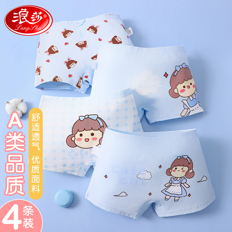 【产品名称:浪莎女童内裤纯棉抑菌平角小女孩春夏款儿童四角裤全棉中大童短裤】