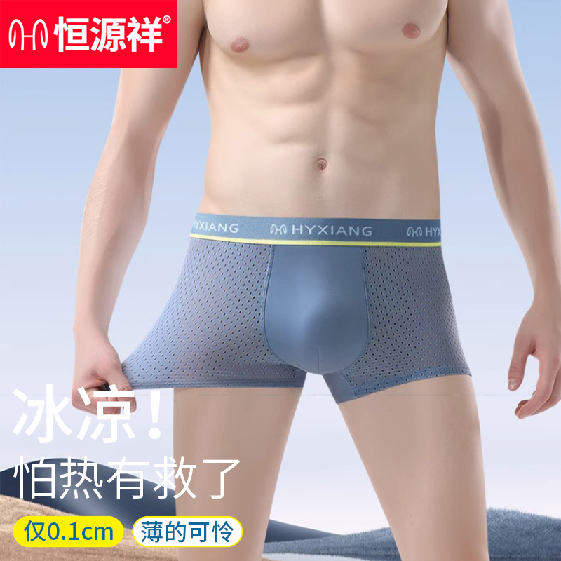 【产品名称:恒源祥男士内裤夏季网眼冰丝透气四角短裤头男款无痕大码抗菌裤衩】