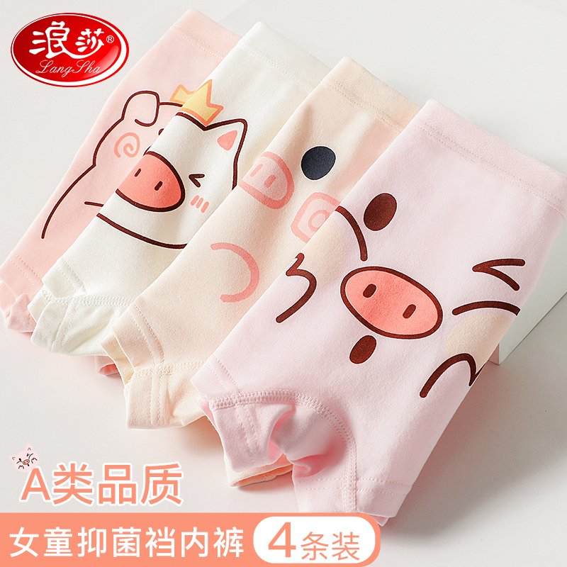 【产品名称:浪莎儿童内裤女童平角纯棉小女孩四角全棉女生不夹屁屁中大童短裤】