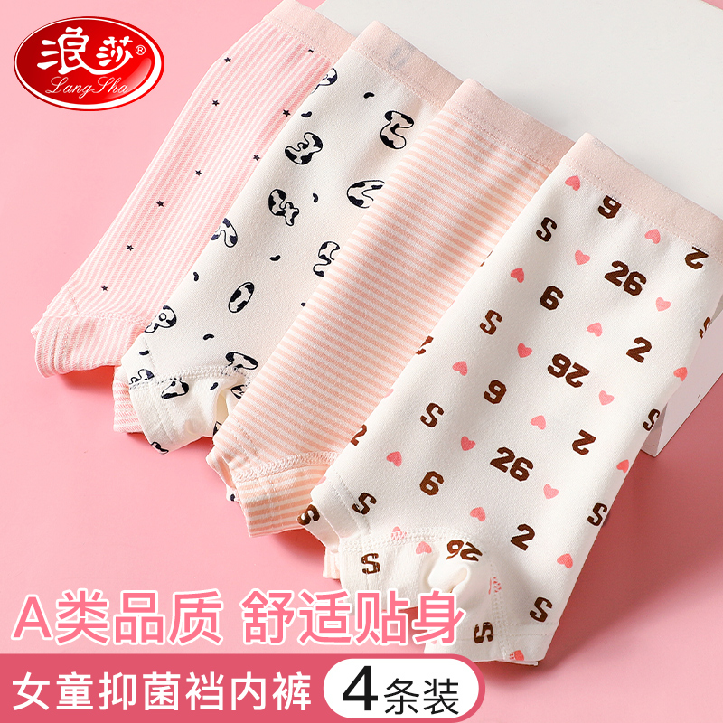 【产品名称:浪莎女童内裤儿童纯棉薄款春夏季四角裤全棉女孩宝宝抑菌平角短裤】