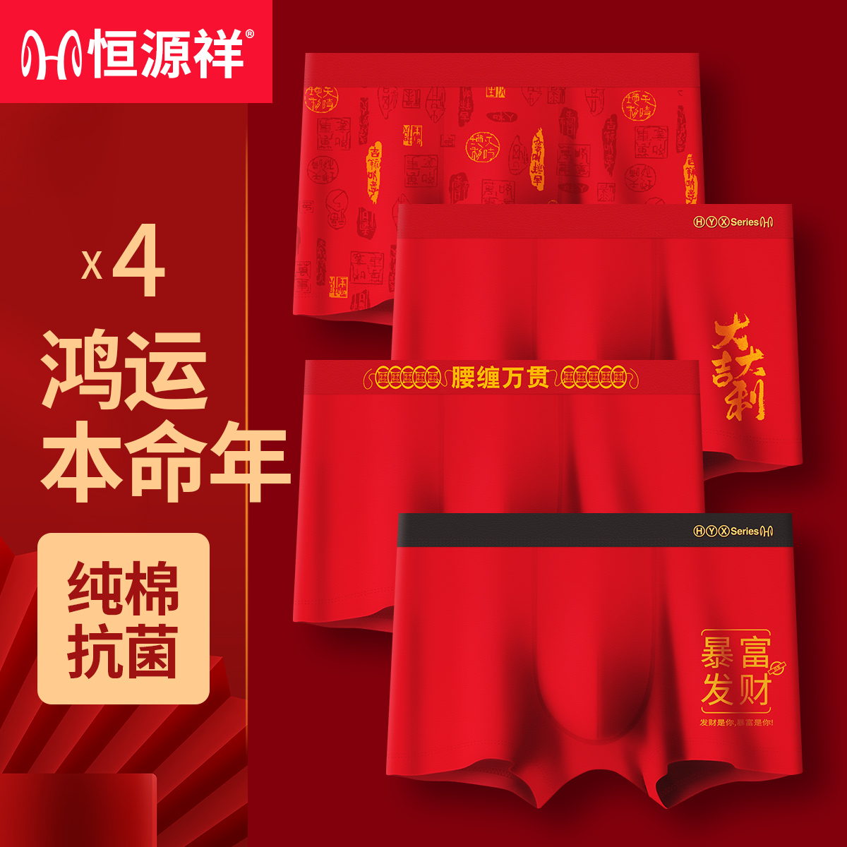 【产品名称:恒源祥本命年内裤男士纯棉结婚男生大红色平角裤四角短裤头2023】