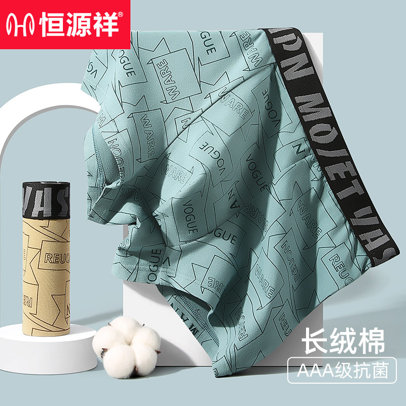 【产品名称:恒源祥纯棉内裤男士平角裤印花潮流抗菌四角青少年短裤头全棉男生】