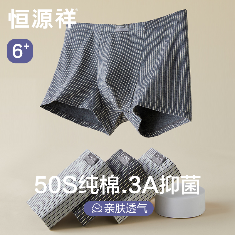 【产品名称:恒源祥男士内裤男生纯棉抗菌平角裤头宽松透气裤衩青年男式四角裤】