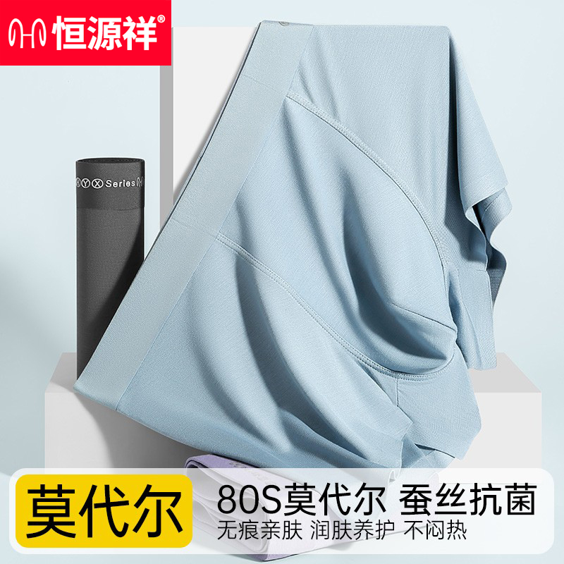 【产品名称:恒源祥男士内裤四角裤短裤莫代尔裤头男款夏季平角裤衩子无痕冰丝】