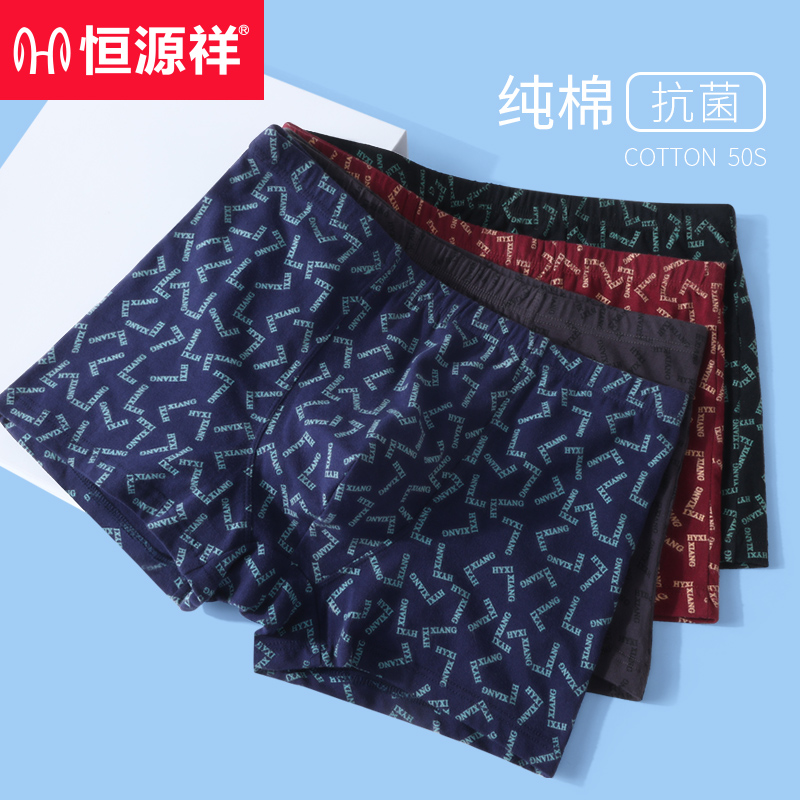【产品名称:恒源祥男士内裤平角纯棉四角裤全棉宽松男生透气短裤大码宽松学生】