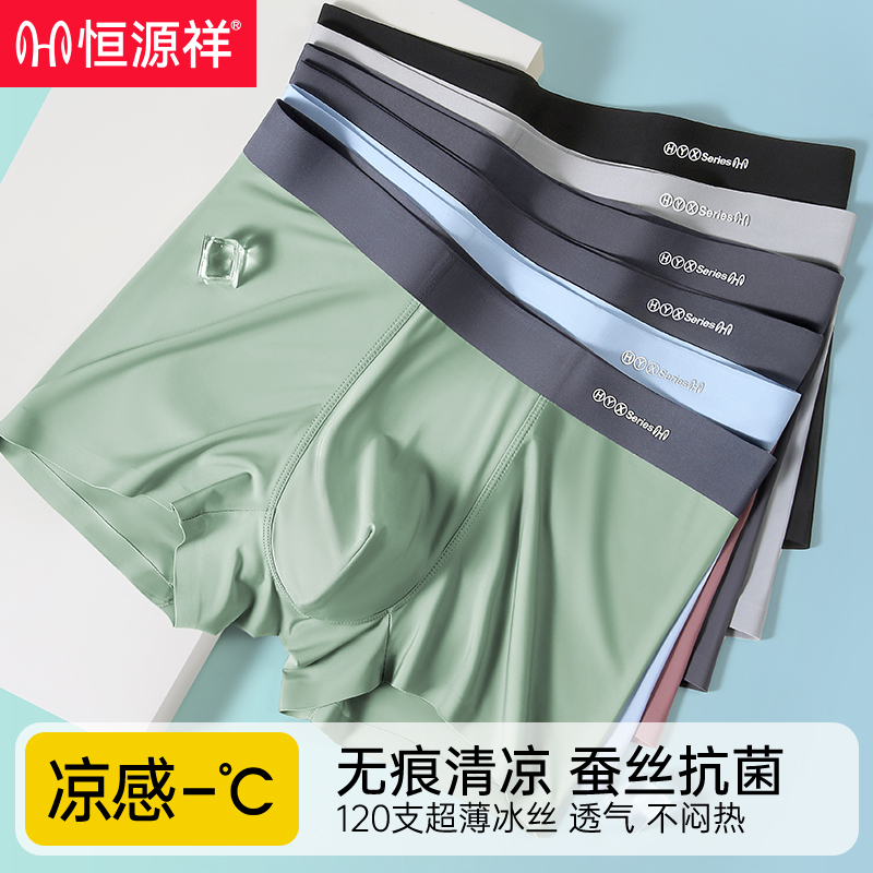 【产品名称:恒源祥男士内裤冰丝凉感抗菌透气四角短裤头男生夏季薄款平角裤衩】