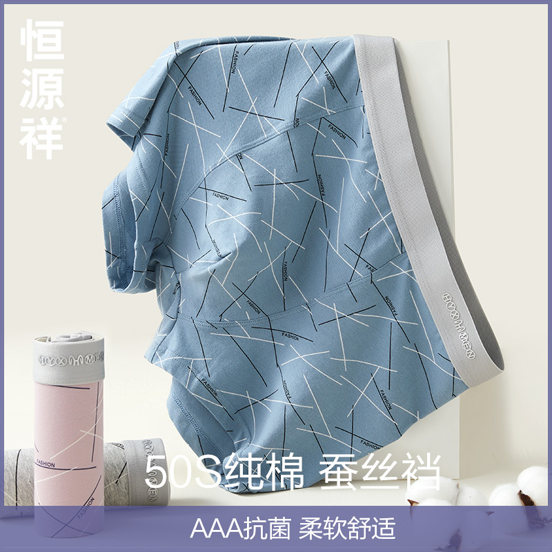 【产品名称:恒源祥纯棉抗菌男士内裤男生平角裤蚕丝档透气薄款宽松四角短裤头】