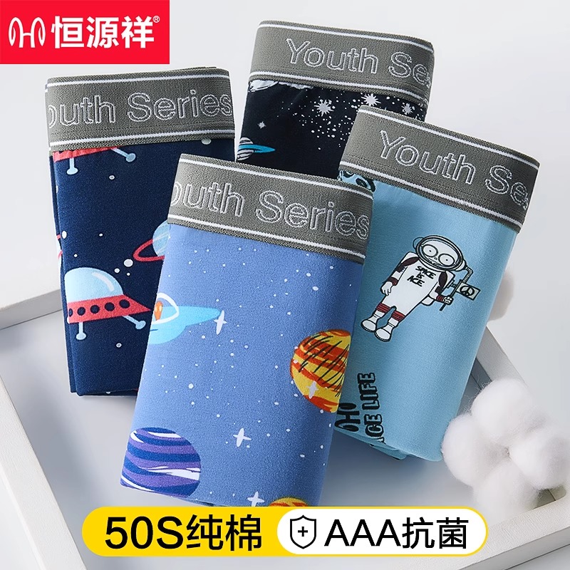 【产品名称:恒源祥青少年内裤男生纯棉抗菌四角裤潮流个性初高中学生平角短裤】