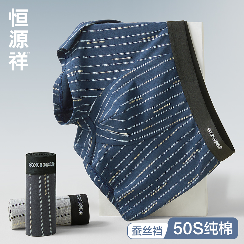 【产品名称:恒源祥男士内裤男生四角纯棉薄款蚕丝抗菌底裆夏季透气平角短裤头】