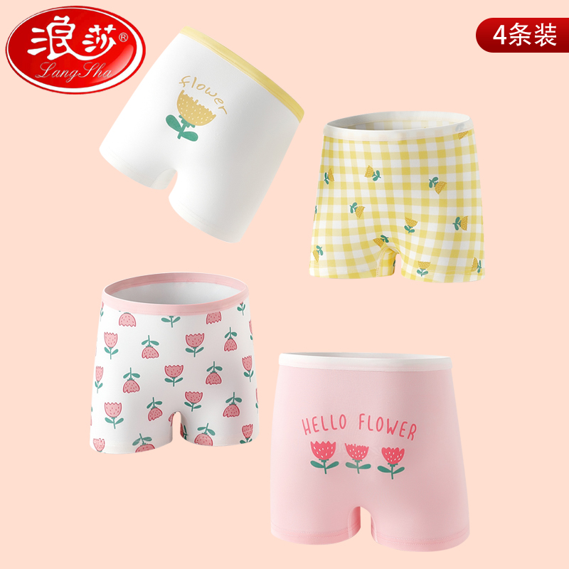 【产品名称:浪莎儿童内裤宝宝春秋款100%纯棉平角短裤卡通不夹屁屁女童四角裤】