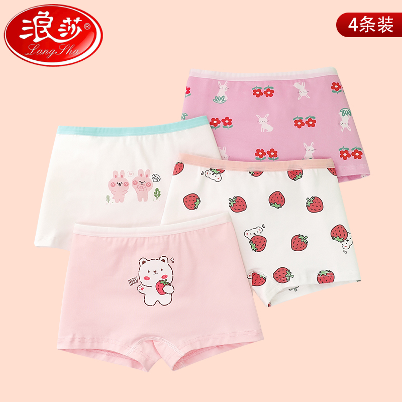 【产品名称:浪莎儿童秋冬款内裤女孩可爱卡通纯棉短裤宝宝不加屁屁平角四角裤】