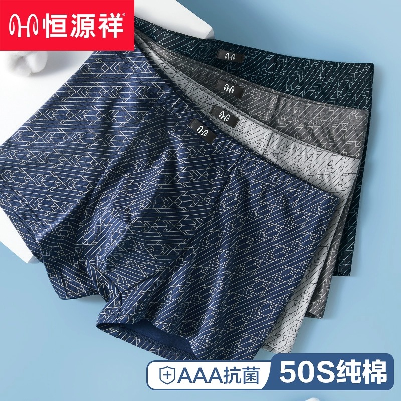 【产品名称:恒源祥男士内裤男纯棉四角裤男生裤头平角裤大码男式抗菌宽松短裤】