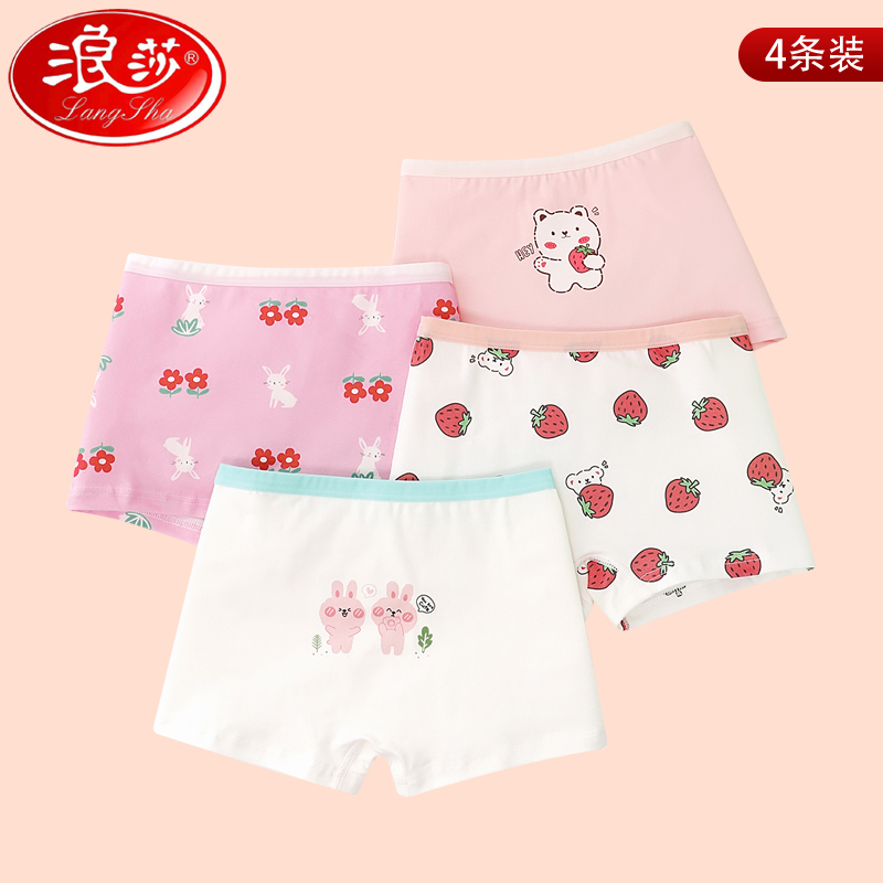 【产品名称:浪莎儿童内裤女童100%纯棉平角四角短裤中大童小女孩卡通内穿裤头】
