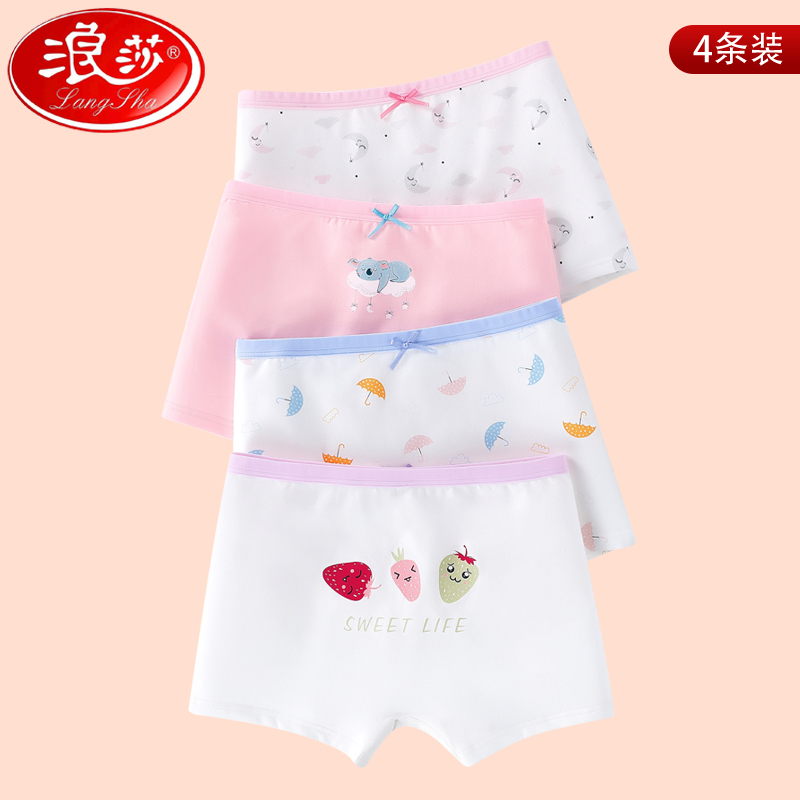 【产品名称:浪莎儿童内裤小女孩纯棉不夹屁屁平角三角裤宝宝可爱卡通四角短裤】
