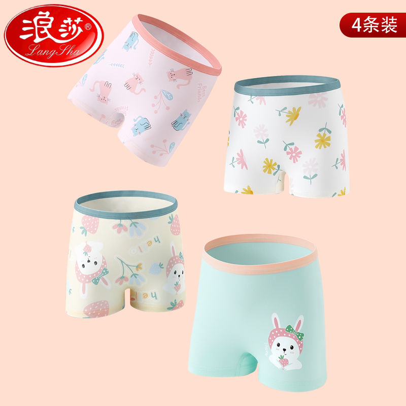 【产品名称:浪莎儿童内裤女童纯棉平角四角短裤小女孩100%全棉透气卡通三角裤】