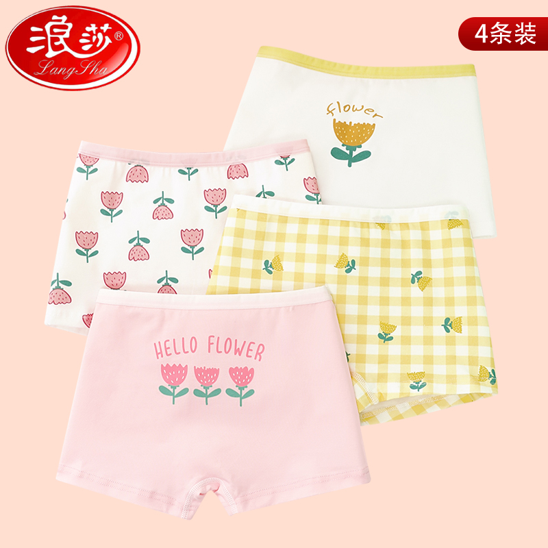 【产品名称:浪莎女童短裤秋冬款小女孩纯棉卡通平角四角裤宝宝不夹屁屁小内裤】