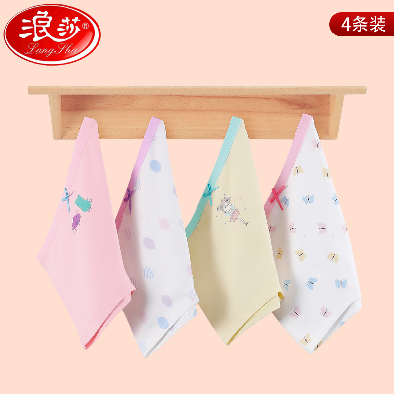 【产品名称:浪莎女童内裤纯棉平角儿童短裤小女孩全棉四角裤大童100%不夹屁屁】