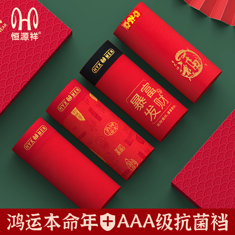 【产品名称:恒源祥本命年红内裤男生四角男款裤头纯棉裤衩吸汗抑菌抗菌短款】