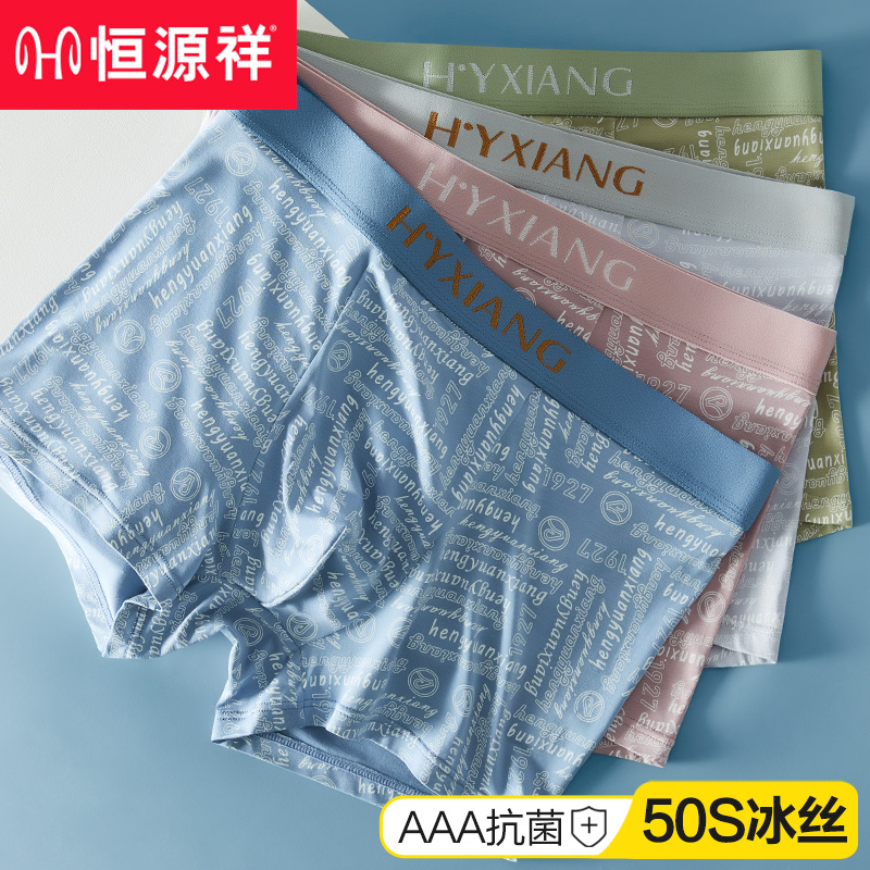 【产品名称:恒源祥内裤男士冰丝凉感平角纯棉裆抗菌短裤衩夏季薄款男生四角裤】