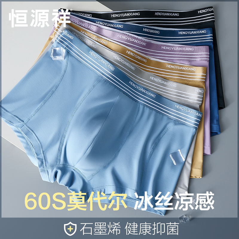 【产品名称:恒源祥莫代尔无痕男士内裤夏季抗菌平角裤衩冰丝凉感薄四角短裤头】