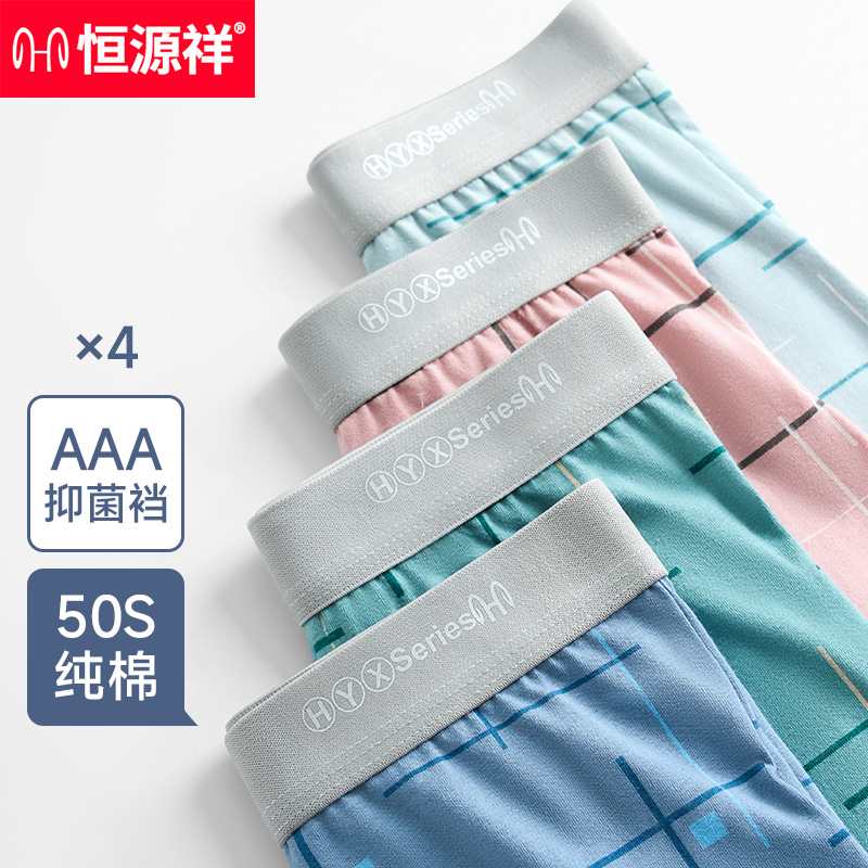 【产品名称:恒源祥男士内裤夏季男款纯棉平角裤抗菌短裤抑菌裤衩儿透气裤头男】