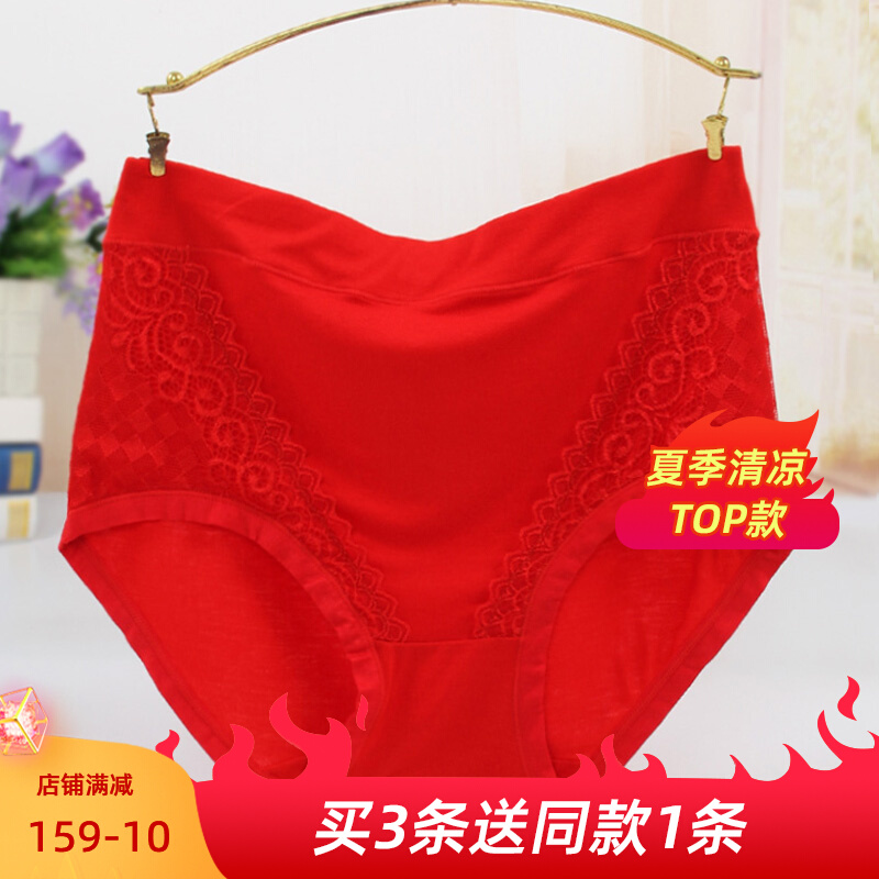 高腰大码内裤女士莫代尔胖mm200斤妈妈中老年人简约红色比纯棉柔