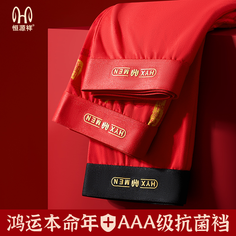 【产品名称:恒源祥男士本命年红色内裤平角纯棉男款裤头全棉抑菌吸汗四角短款】