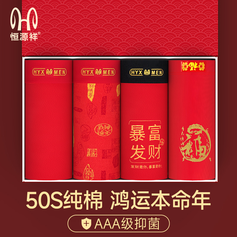 【产品名称:恒源祥男士本命年红内裤纯棉抑菌抗菌四角裤头短款男式透气裤衩】