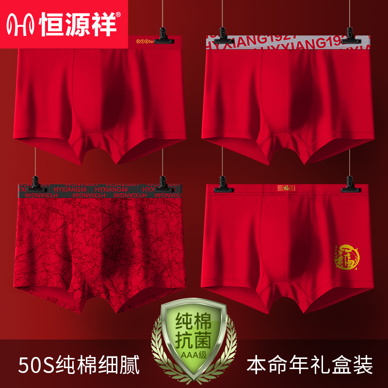 【产品名称:恒源祥纯棉男士内裤平角本命年大红色四角短裤结婚属兔年礼物全棉】
